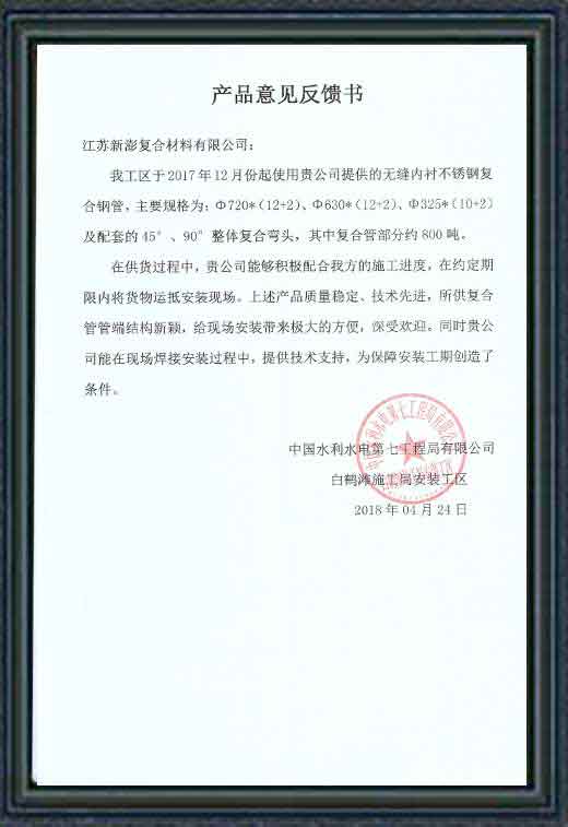 臨江市引泉入城項(xiàng)目,管道總長(zhǎng)108公里、被稱為全球最長(zhǎng)距離天然礦泉水輸送工程,輸送壓力4MPa;我司提供DN700內(nèi)襯不銹鋼螺旋焊管及配套管件,供貨總量超過30公里(供貨時(shí)間2016)。