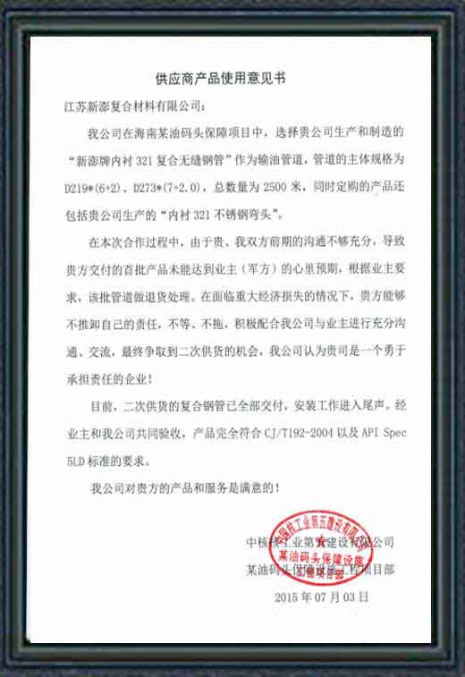江蘇新澎——內(nèi)襯不銹鋼復(fù)合管用途